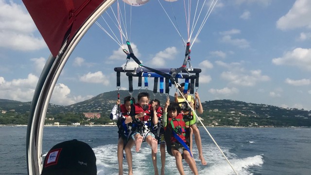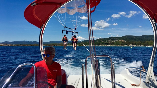 N'hésitez pas à venir faire le plein de sensations sur le plus beau, le plus grand et le plus moderne des bateaux parachute du golfe de Saint Tropez.