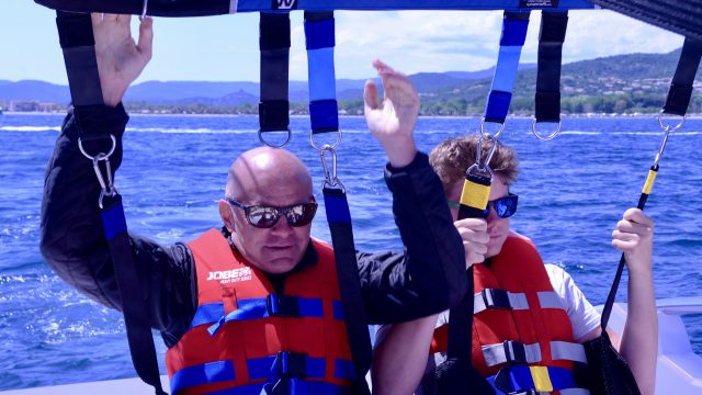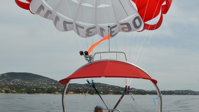 N'hésitez pas à venir faire le plein de sensations sur le plus beau, le plus grand et le plus moderne des bateaux parachute du golfe de Saint Tropez.